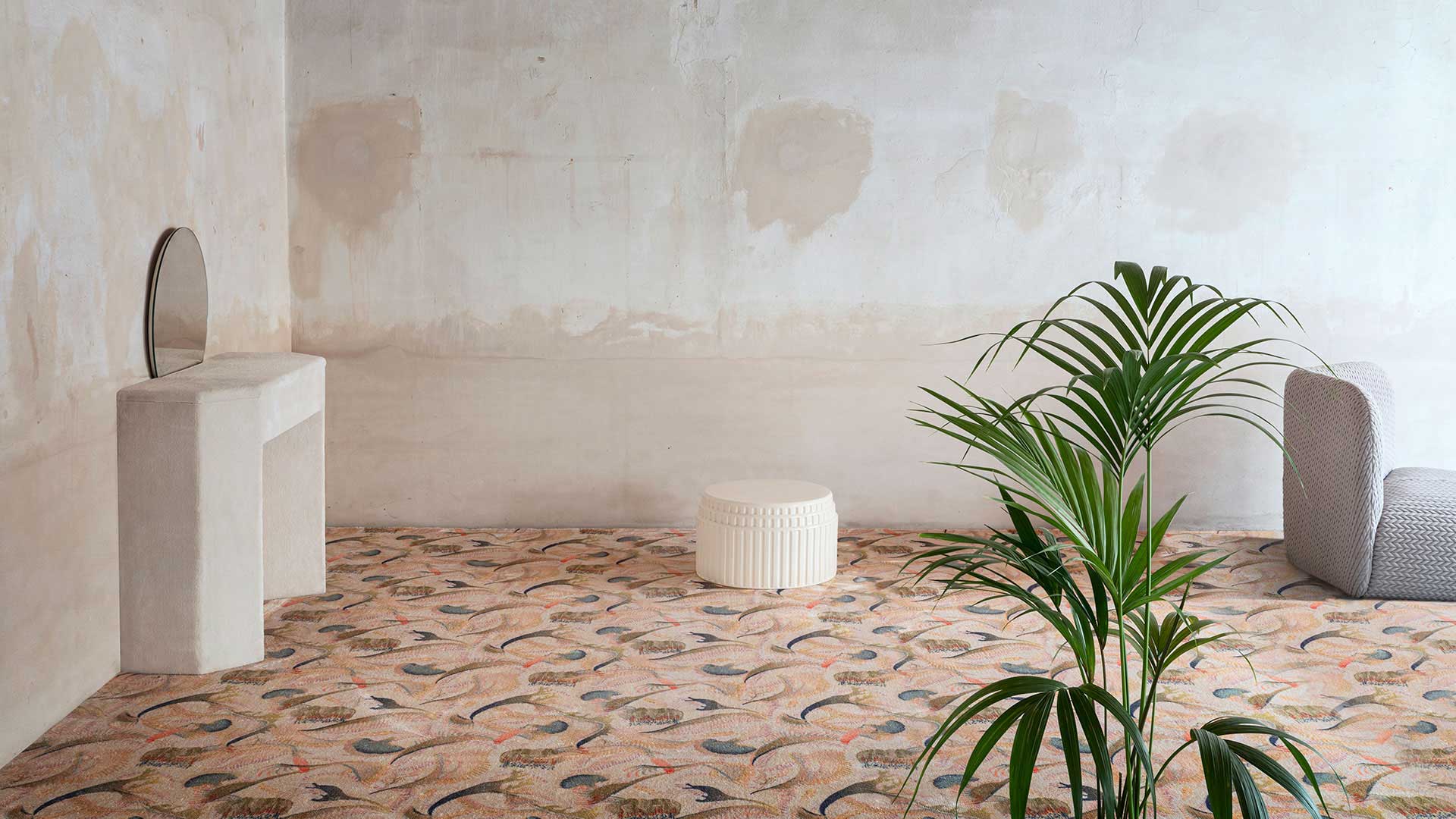 Realizzata da Cristina Celestino in esclusiva per Besana, Nebula rievoca un mondo immaginifico e fantascientifico, dove la botanica si mescola all’astronomia per comporre una moquette dall’aspetto morbido e cangiante. La composizione in poliammide la rende ignifuga e resistente a passaggi frequenti anche grazie al sottofondo in feltro.
